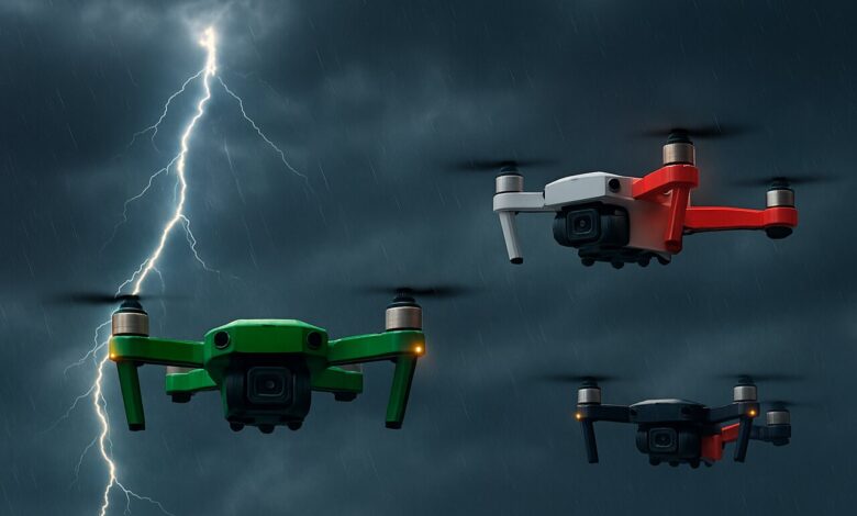 2. چالش‌های محیطی: پرواز در محیط‌های ابری پرچالش است. یخ‌زدگی بر روی پروانه‌ها یک نگرانی مهم برای پهپادهای چندروتور است، اگرچه راهکارهایی مانند نصب پروانه‌های گرمایشی (مانند Meteodrone) برای جلوگیری از تجمع یخ توسعه یافته‌اند. همچنین، بادهای شدید، دماهای پایین (که بر عمر باتری تأثیر می‌گذارند) و رطوبت بالا (که به قطعات الکترونیکی آسیب می‌زند) از جمله عوامل محیطی هستند که عملیات پهپادها را محدود می‌کنند.